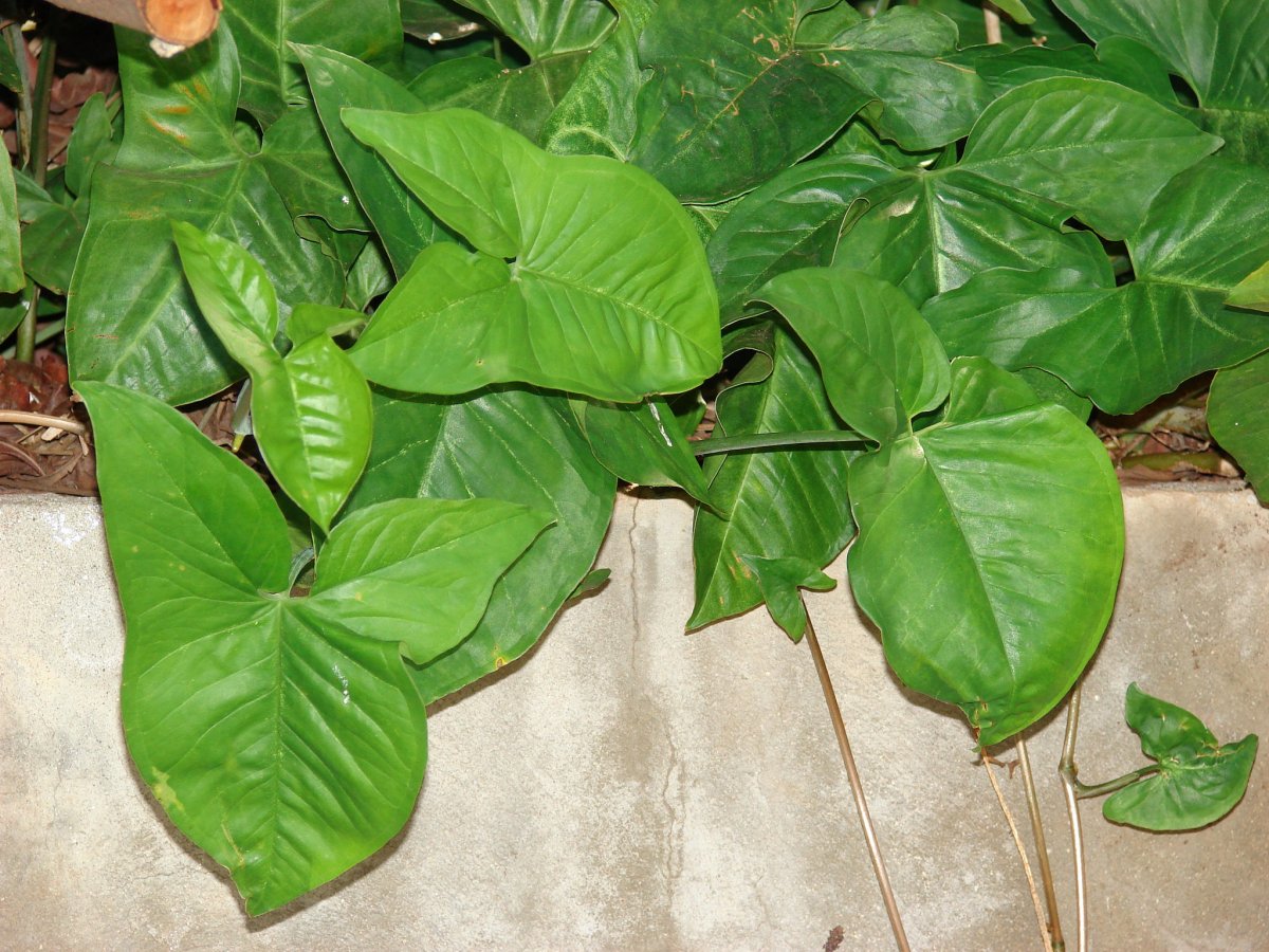 По форме листья сингониума бывают сердцевидные, стреловидные, копьевидные или трехраздельные. Интересно, что если молодой сингониум образует цельные стреловидные листья, то в зрелом возрасте на том же самом растении могут образовываться разделённые лопастные листья.