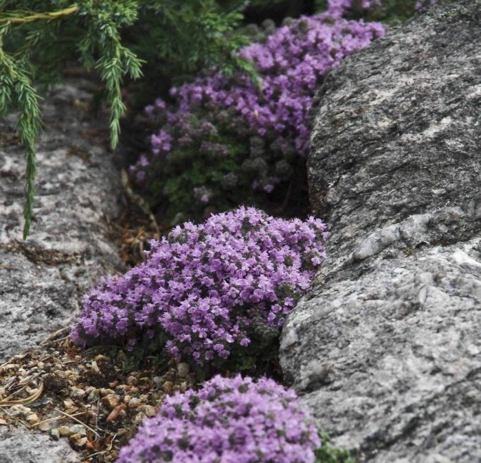 Тимьян легко разрастается ползучими стеблями, которые зимой не вымерзают. Сажают тимьян весной или в конце лета на расстояние 25–30 см друг от друга.