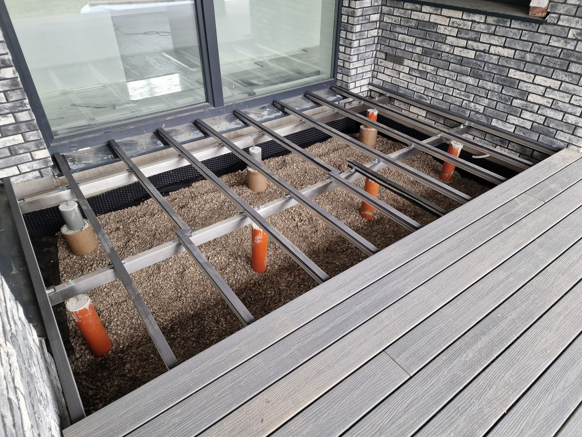 Древесно-композитные материалы (декинг и садовый паркет) содержат древесную стружку и химические связующие; внешне напоминают дерево, но прочнее и долговечнее, практически не скользят, не перегреваются, не меняют объем в зависимости от температуры, не поглощают воду.