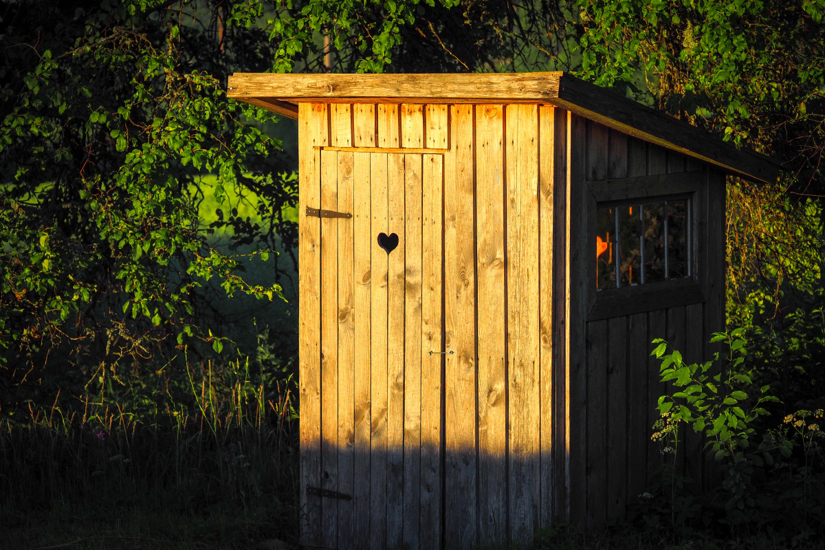 Выгребная яма с построенным над ней «домиком для размышлений» — это наиболее простой и дешёвый способ накопления фекальных стоков. Устроить такой туалет на участке можно буквально за день, выкопав яму объёмом 2-3 куб.м. К преимуществам неизолированных выгребных ям можно отнести большой процент жидких стоков, которые без нашего участия инфильтруются в почву. В самой яме остаётся только твёрдый осадок.