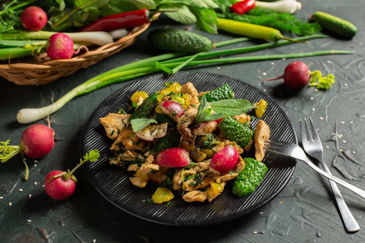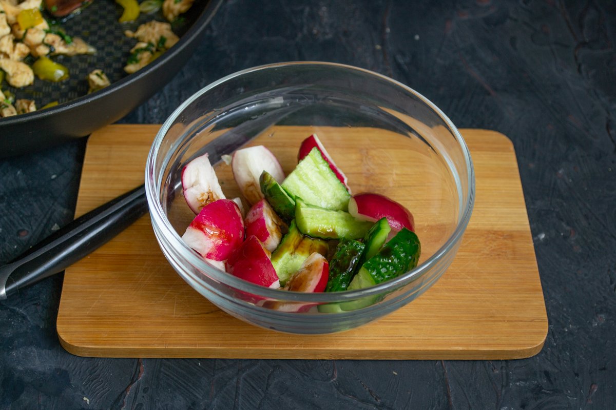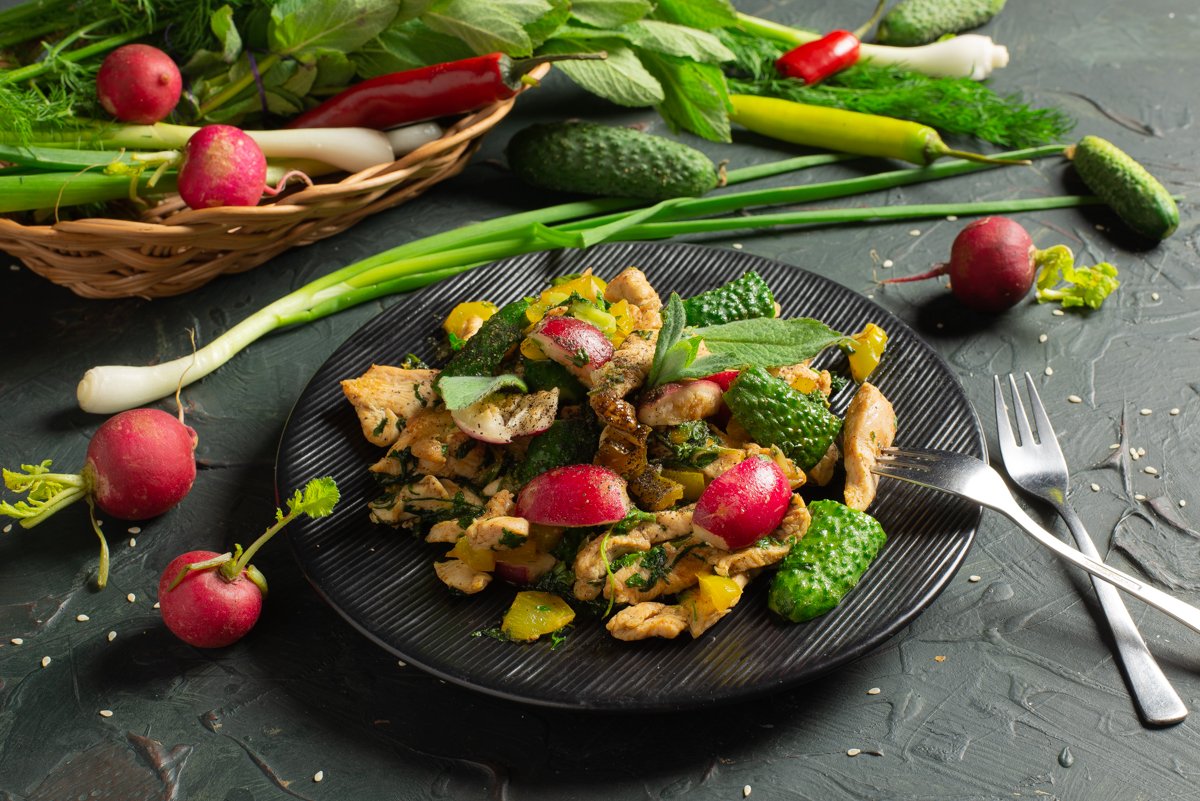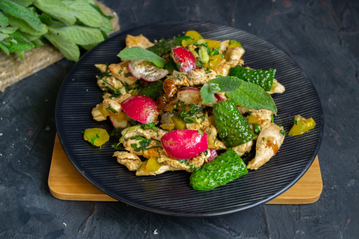 Способ приготовления тёплого диетического салата с куриной грудкой