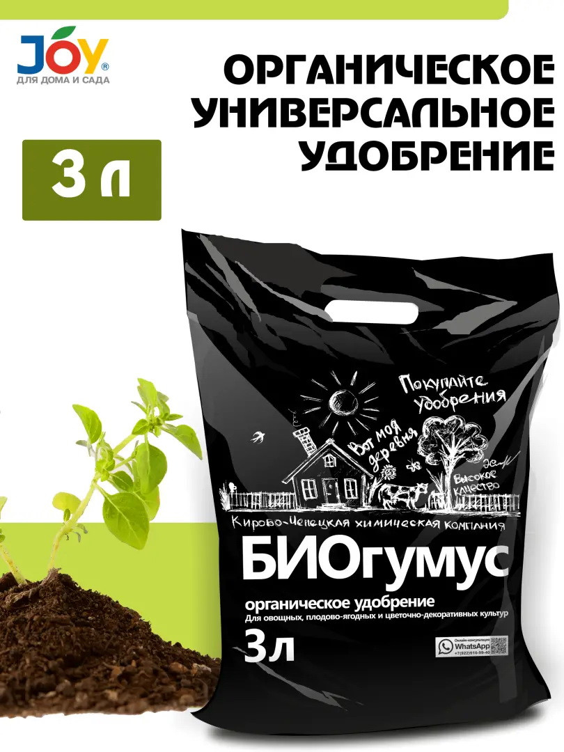 Второй вариант – взять готовое органическое удобрение JOY «Биогумус». Это продукт, полученный при переработке коровьего навоза калифорнийскими червями – абсолютно натуральный, безопасный и эффективный. Можно сказать, что это квинтэссенция естественного плодородия почв.