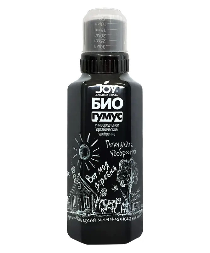 Под ТМ JOY выпускается ещё и уникальный жидкий препарат во флаконе 0,5 л, способный сэкономить ваше время и силы, но обладающий абсолютно всеми качествами природного гумуса. Биогумус по-настоящему универсален и может использоваться для любых культур и в любое время года, так как не относится ни к «весенним», ни к «осенним» удобрениям.