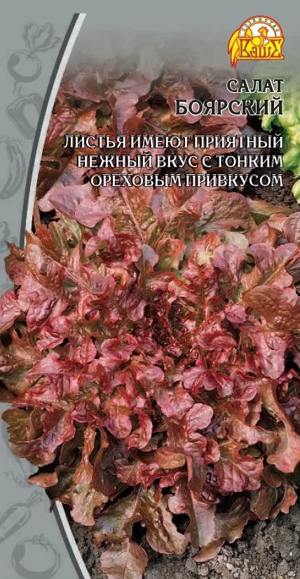 Необычные резные листья салата «Боярский» сразу притягивают взгляд благородным бордово-коричневым оттенком и оригинальной формой, напоминающей листья дуба. А их нежный приятный вкус с тонким ореховым привкусом в сочетании с аппетитным хрустом превратит этот сорт в один из ваших любимых.