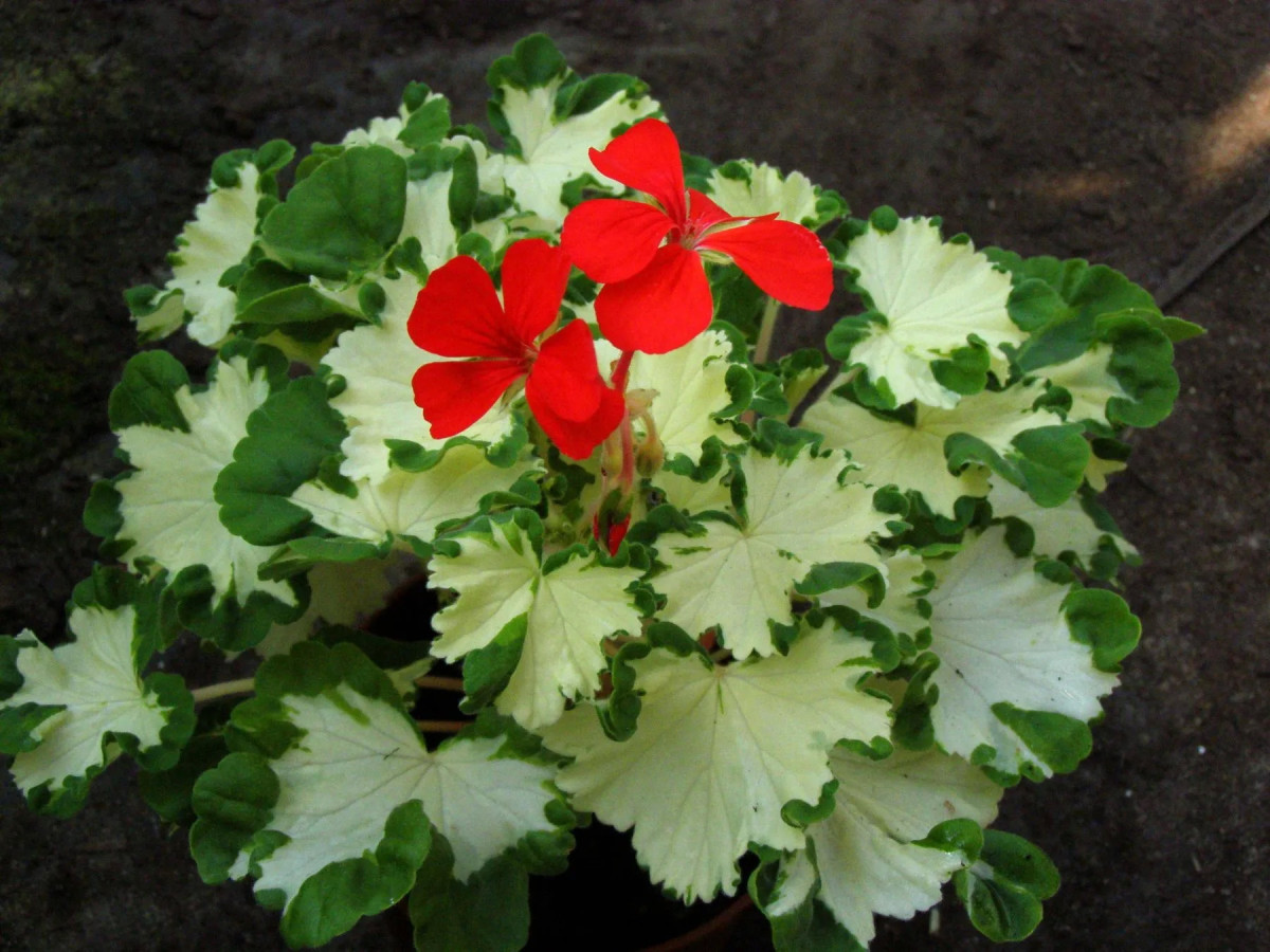 Она привлекательна не только листвой, но и ярко-красными цветками, выделяющимися на фоне пестрой кроны. Обратите внимание: эта интересная пеларгония растет очень медленно и нуждается в большом количестве света. Ей потребуется немного больше внимания, чем обычным сортам.