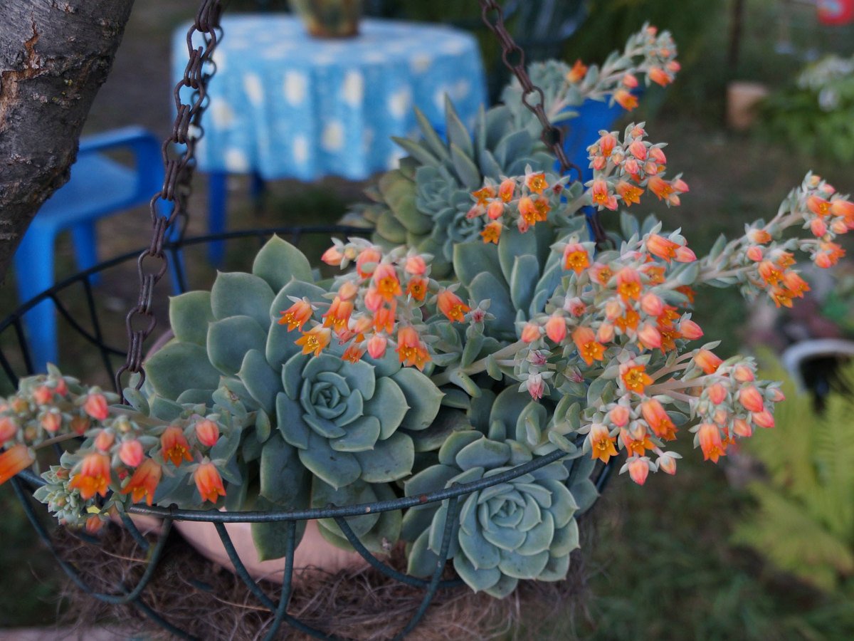 Алла Алексеевна, кроме того, большая любительница комнатных цветов, и каждое лето вывозит их на свою дачу, гармонично вписывая домашние растения в дизайн сада. Например, суккуленты она размещает в подвесных корзинах, герани в контейнерах, а иногда высаживает пеларгонии непосредственно на клумбу, а колеусы размещает среди садовых растений.