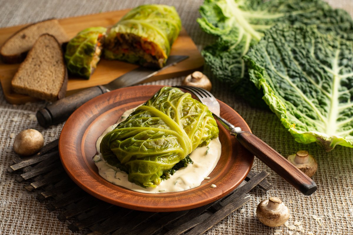 Способ приготовления вегетарианских голубцов на пару из савойской капусты