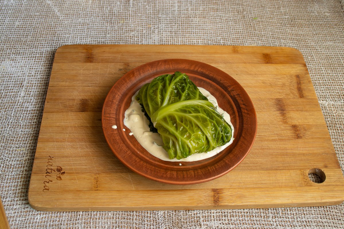 Самый простой соус для постных голубцов — 100 мл соевого йогурта, 2 чайных ложки дижонской горчицы, 1 чайная ложка соевого соуса, горсть мелко порубленной кинзы — все смешать, поперчить.