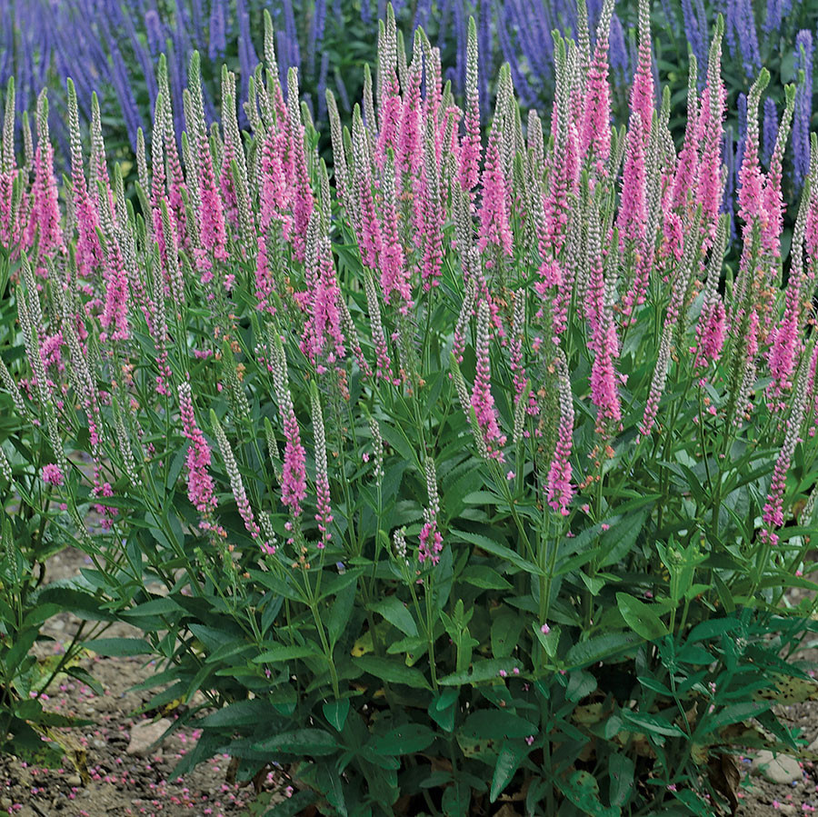 Кустики вероники колосковой, как правило, все лето остаются густо облиственными до земли, поэтому не требуют подбивочных растений, а сами образуют передний план цветника.