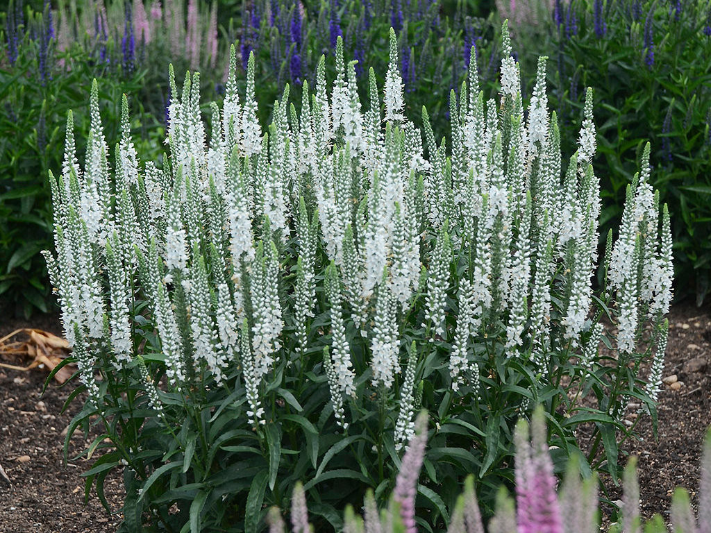 Вероника «Увайт Вандс» (White Wands) имеет идеальную высоту для посадки за низкорослыми многолетниками, но перед высокими кустами. Будет цвести с середины до конца лета. Превосходное повторное цветение этого сорта продолжается даже после того, как другие вероники перестали цвести, поскольку это один из самых долгоцветущих доступных сортов с цветками белого цвета.