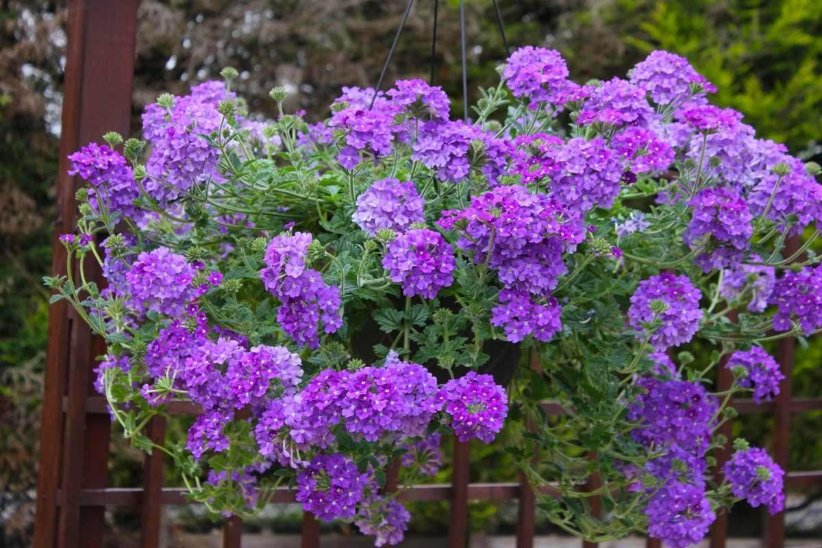 Другие виды вербены тоже уместны на балконе, например, необычная вербена «Имаджинейшен». У нее резная листва и однотонные сине-фиолетовые цветки. Такая вербена хороша для подвесных корзин.