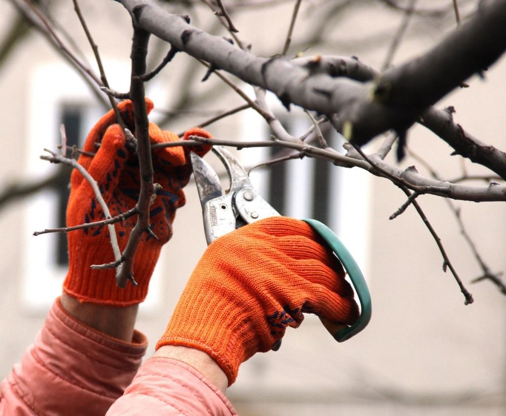 - При наступлении устойчивой температуры в -5..-7ºС проводим обрезку кроны, очистку штамба и скелетных ветвей от старой отставшей коры, которая служила «зимними квартирами» для вредителей. Спилы и срезы обрабатываем варом, специальными составами или просто обеззараживаем 5% медным купоросом и закрашиваем масляной краской.