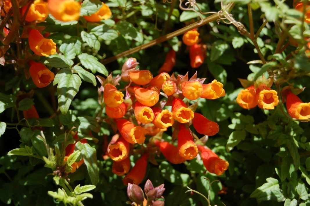Для того чтобы вислоплодник цвел неустанно и действительно восхищал огненными колокольчиками с мая и до октября, нужно будет регулярно удалять увядающие соцветия и не позволять вызревать соплодиям. Но главный залог пышного цветения – своевременная обрезка. Для того чтобы вислоплодник активно развивался, достигал больших размеров, красовался крупными соцветиями, нужно укоротить длинные побеги еще до выноски его обратно в сад.