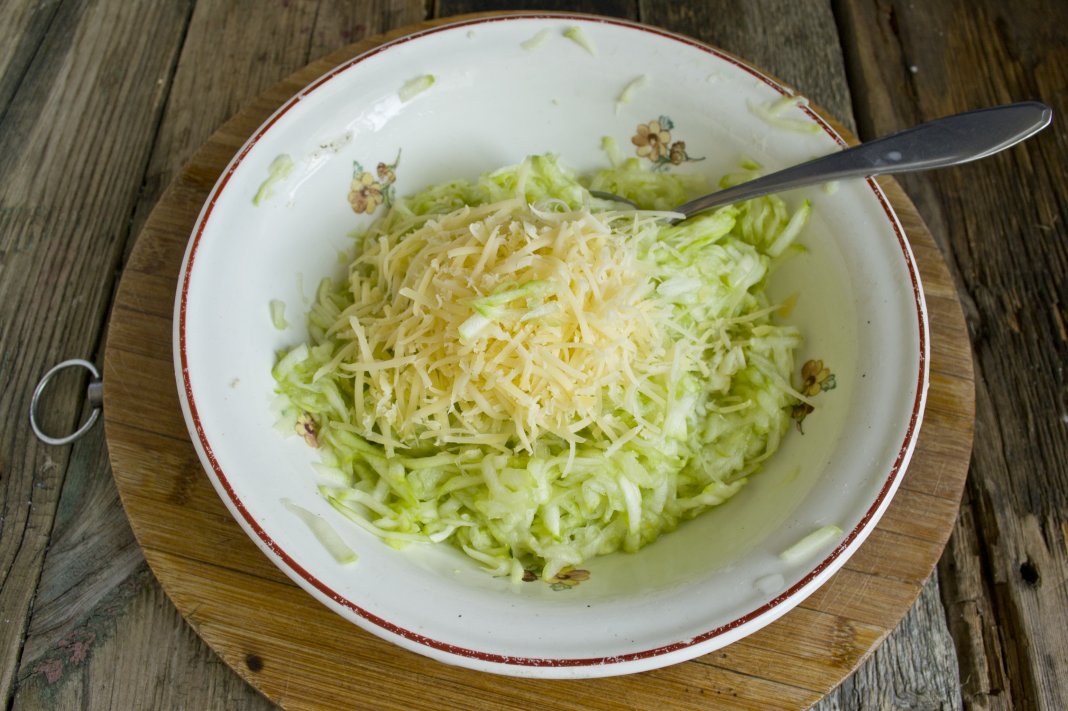 Способ приготовления вкусных оладий из кабачков с сыром и чесноком
