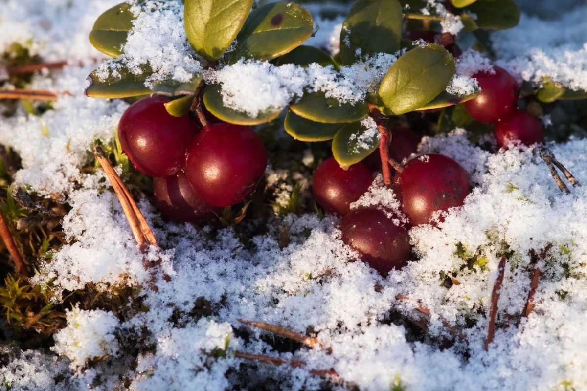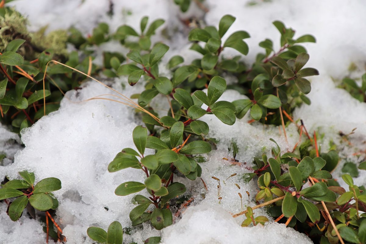 Даже в северных российских лесах и в тундре есть вечнозелёные растения. Это низкорослые ягодные кустарнички — брусника (Vaccinium vitis-idaea), клюква (Vaccinium oxycoccos), водяника или шикша (Empetrum nigrum). Зимой под снегом они, конечно, спят. Но, как только оттает, немедленно просыпаются и начинают фотосинтезировать, не теряя времени на отращивание листвы. В условиях короткого северного лета каждый день дорог.