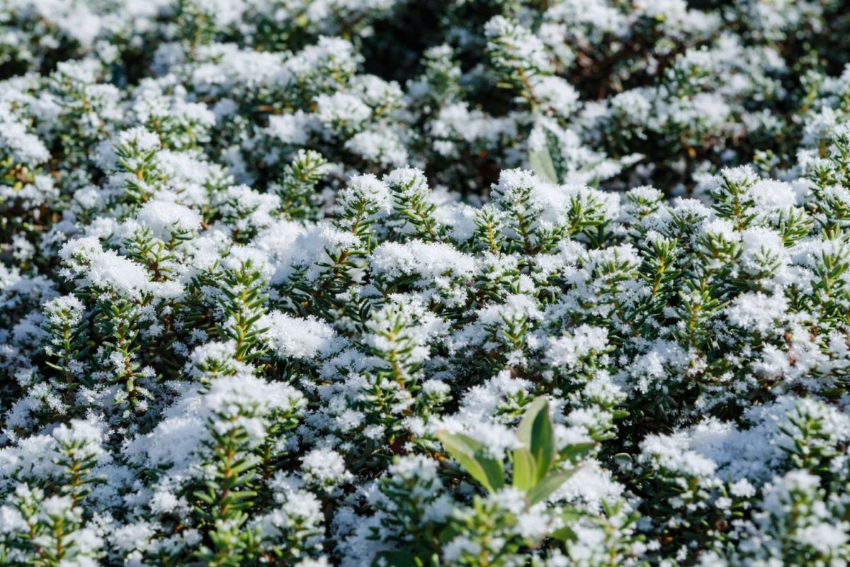 В процессе эволюции широколиственные растения всё же искали альтернативные пути, и некоторые-таки нашли. Конечно, совсем так, чтобы при сорокоградусных морозах, да на ветру, да без снега, пока не приспособились, но 20-градусную отметку уже преодолевают. А под снегом вообще хорошо получается. То есть морозоустойчивые растения с листьями, зелёными зимой — преимущественно кустарники и травы. И, как правило, подлесковые или лесные по происхождению.