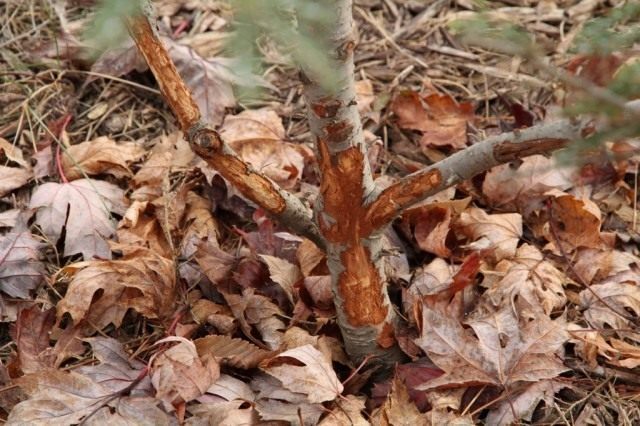 В зимнюю пору основными активными вредителями являются мыши, зайцы и яркое солнце.