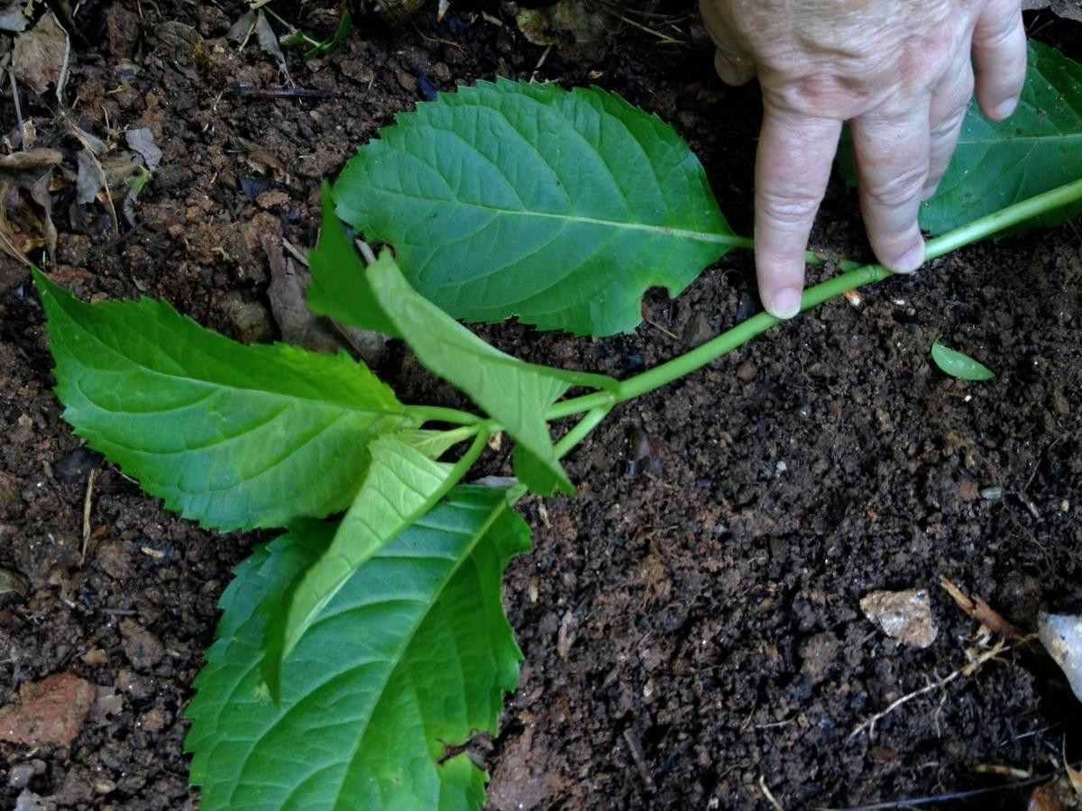 Далее черенки высаживают в грунт, в притененное место, так как лучше всего гортензия укореняется при температуре не выше +25 °С. При посадке следят, чтобы черенки не касались друг друга листочками и не прикасались ими к земле. Несколько недель после посадки черенки не только периодически поливают, но и опрыскивают водой из пульверизатора.