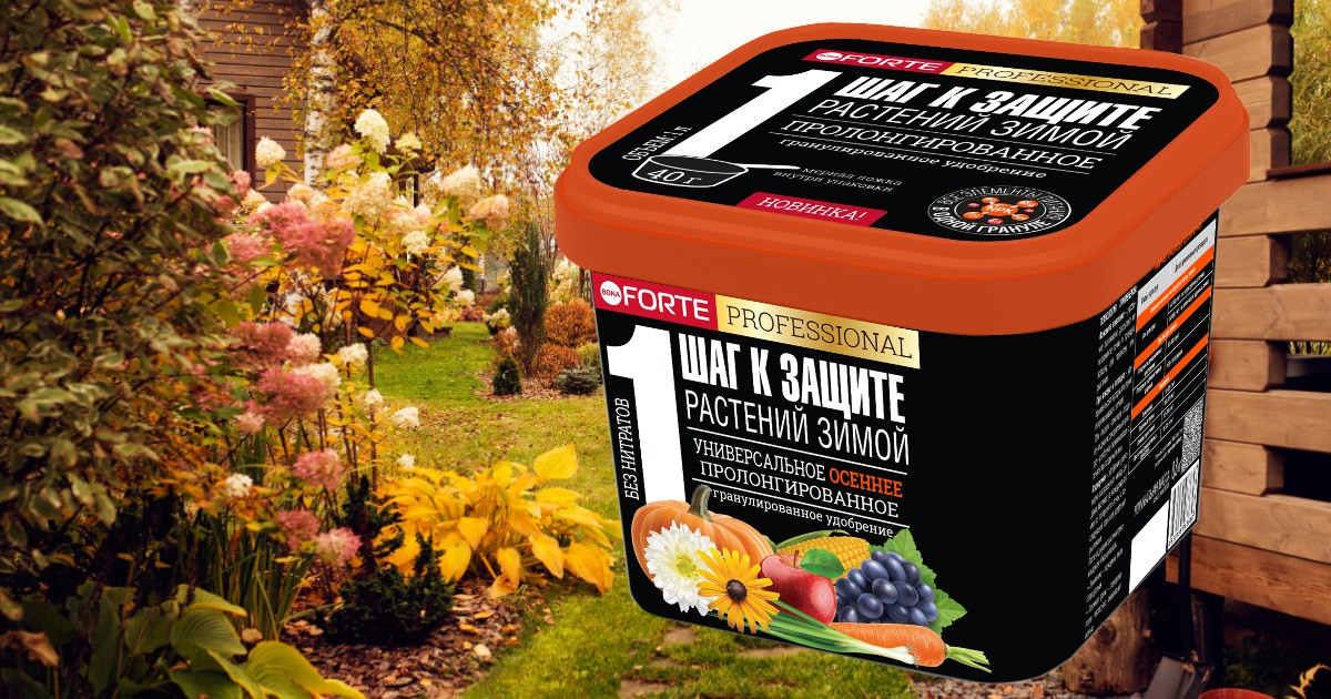 Удобрение для плодовых деревьев осенью тоже должно содержать азот, так как его дефицит для плодово-ягодных многолетников ещё хуже, чем лёгкий переизбыток. Да и подкормка газона осенью немыслима без азотных соединений. Так, в удобрение Газонное Лето-Осень Bona Forte основные элементы – NPK входят в пропорции 2:8:12, и это оптимальное сочетание для злаковых трав в конце сезона.
