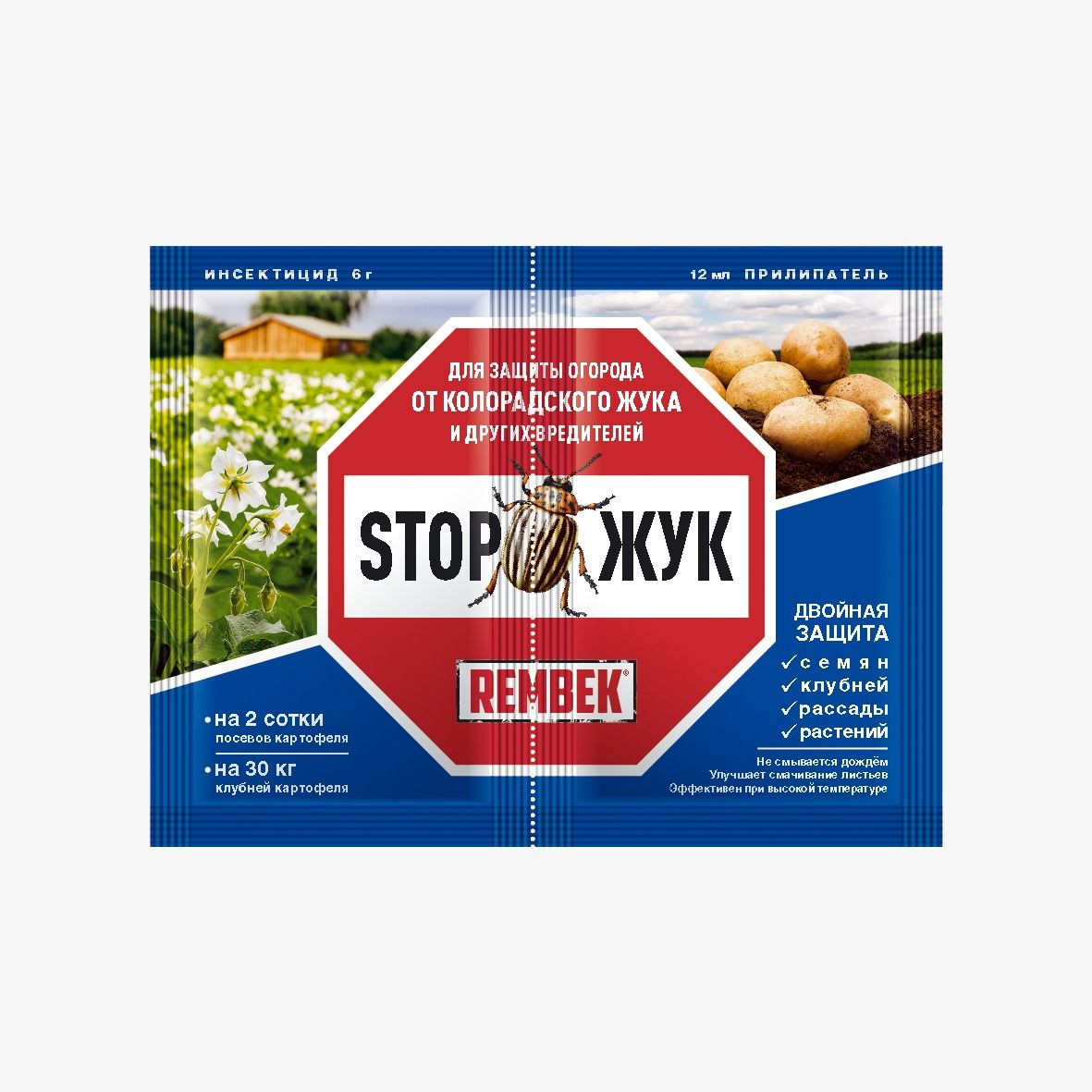 Основным способом борьбы с колорадским жуком остаются инсектицидные средства. Обычно для уничтожения листогрызущего вредителя используют химические соединения разных классов системного и контактно-кишечного действия, которыми опрыскивают кусты картофеля. В препарат Рембек Стоп Жук входит имидаклоприд – контактно-кишечный пестицид. Попадая в организм насекомого при питании, он вызывает фатальные нарушения деятельности нервной системы и, впоследствии, гибель вредителя. Причём средство эффективно и против взрослых жуков, и против личинок любого возраста, которые перестают питаться почти сразу после опрыскивания посадок. Рембек Стоп Жук можно использовать на всех стадиях выращивания картофеля, а также для обработки семенного материала. Но на этом преимущества препарата не заканчиваются.