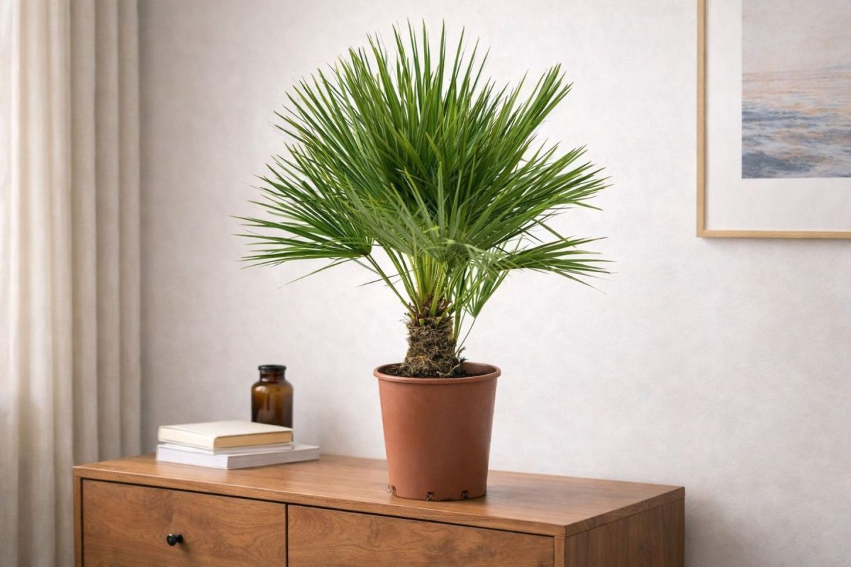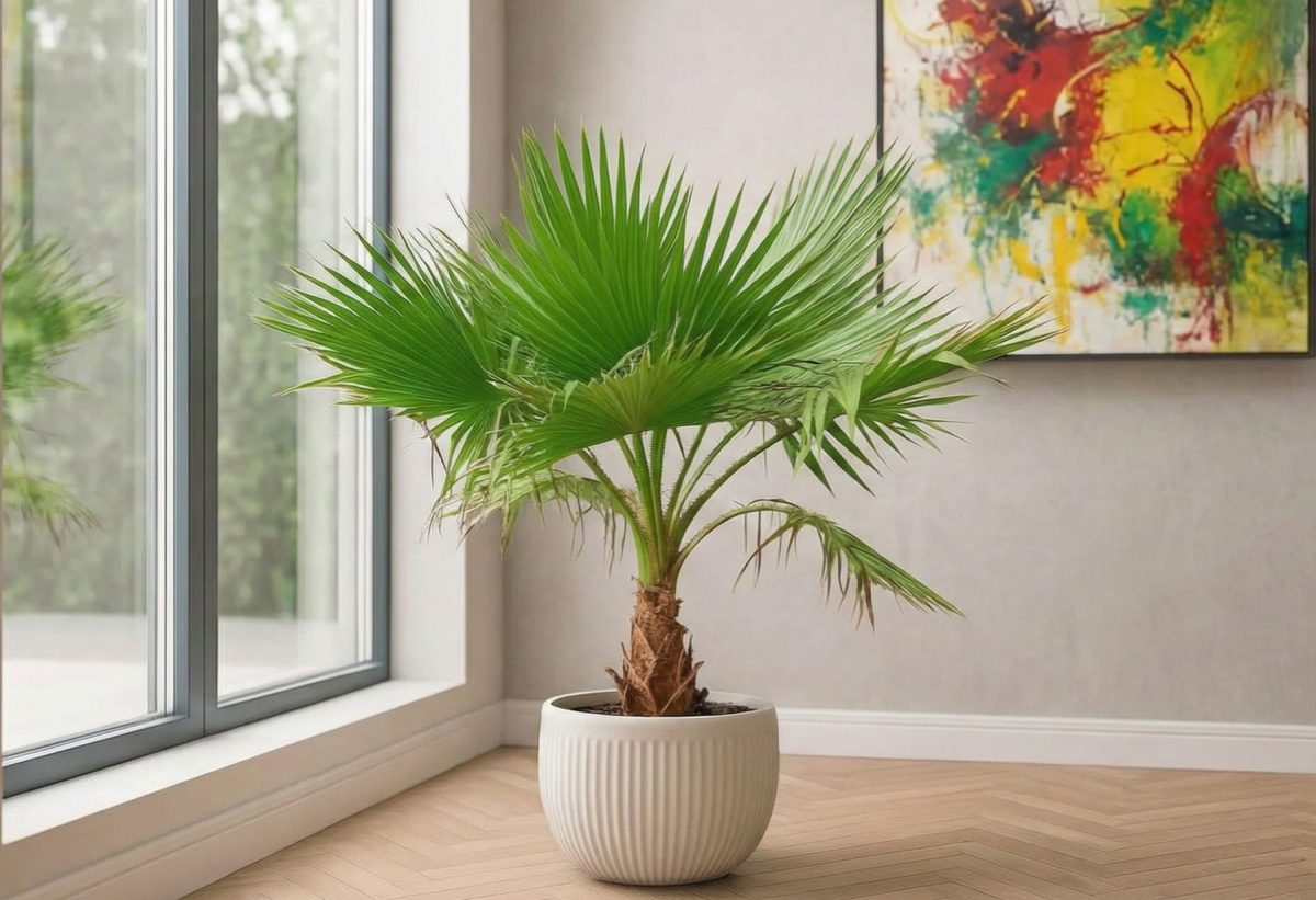 Ещё один плюс — предсказуемость. Пальмы растут неспешно, избавляя вас от частых пересадок и необходимости работать секатором. Купили метровую — через год она подрастет всего на 10–15 сантиметров. Никаких внезапных джунглей и сюрпризов с габаритами: вы сразу понимаете, сколько места займет растение через год или пять.