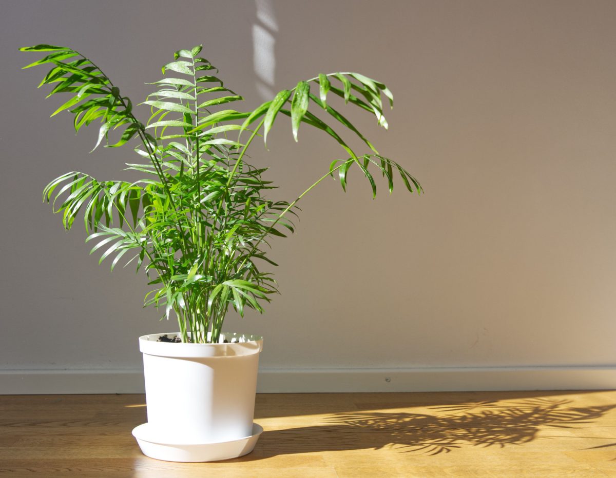 Растение универсально: может расти в полутени, но будет радо и рассеянному свету — идеально подойдут восточные окна или место в 1–2 метрах от южного. Северные окна ее тоже не пугают. Полив нужен умеренный: летом — как только просохнет верхний слой земли (2–3 см), примерно раз в неделю, а зимой — когда грунт просохнет на треть горшка. Воду из поддона обязательно сливать. Опрыскивание не обязательно, но полезно для смывания пыли. Подкармливать следует минеральным удобрением для пальм раз в месяц с апреля по сентябрь, зимой удобрения не нужны.