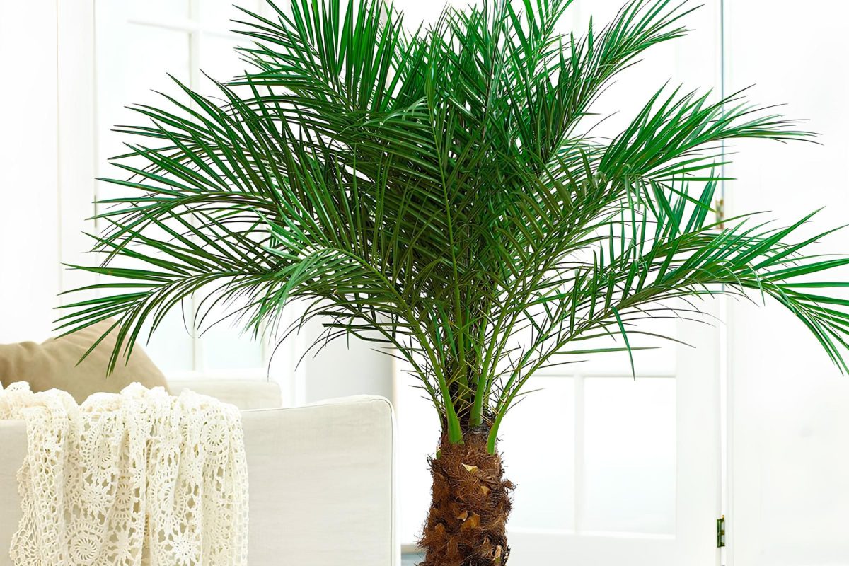 Требует яркого рассеянного света, зимой желательна досветка лампой, чтобы избежать листопада. Можно поставить прямо у окна, но в самый солнцепек лучше организовать легкое притенение. Поливать нужно регулярно и обильно теплой водой, не допуская полного пересыхания земляного кома — корни у финика не восстанавливаются. Растение теплолюбиво (не ниже +16°C), боится холодных сквозняков, но летом будет радо переезду на балкон в защищенное от ветра место.