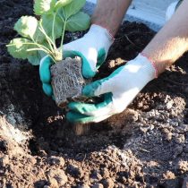 - Уплотните землю вокруг куста. От этого простого действия приживаемость значительно увеличивается. Ведь благодаря небольшой трамбовке грунта корни лучше соприкасаются землей. Проверить, хорошо ли была посажена розетка просто – слегка потяните куст за листочек. При плотной посадке растение останется на месте, не будет свободно двигаться в лунке.