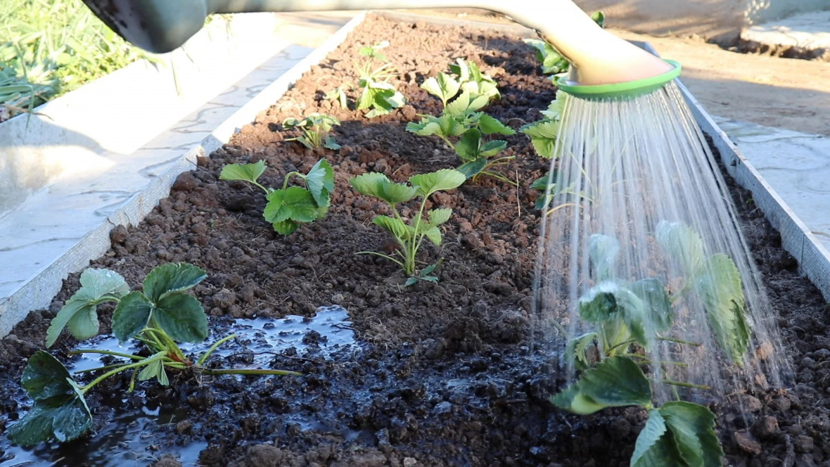 - Хорошо полейте грядку из лейки с дождевателем. Если вы хотите, чтобы укоренение прошло быстрее, добавьте в воду любое корнестимулирующее средство, например, «Коренвин», «Этамон», «Гетероауксин».