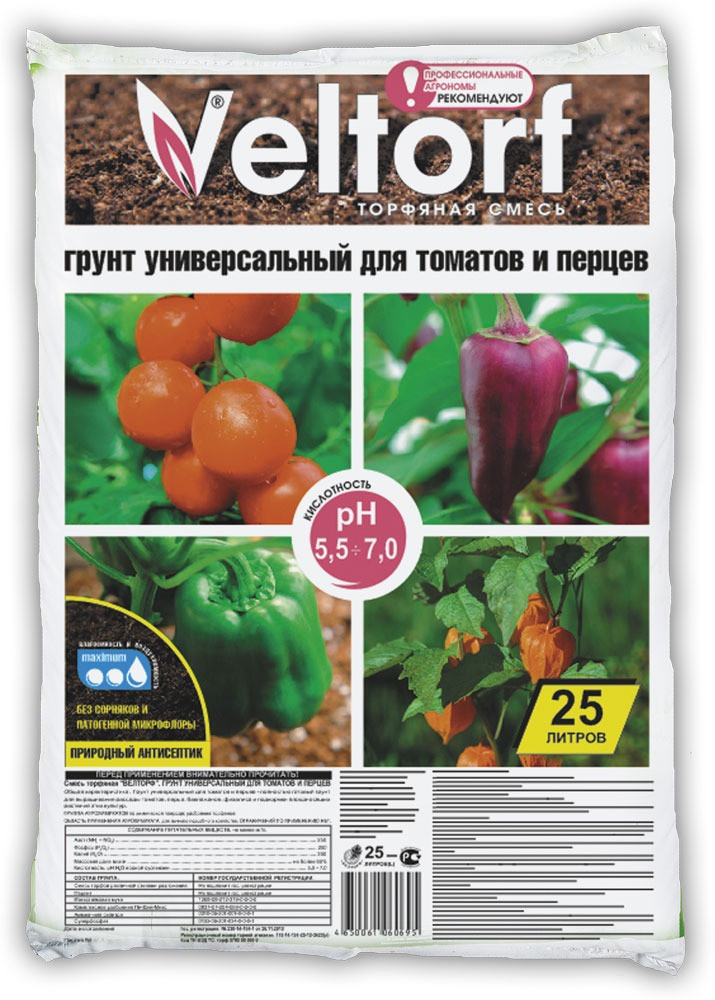 Намного надёжнее купить готовую почвосмесь — грунт для рассады серии Veltorf. Почва «Велторф» сделана с учётом всех потребностей рассады томатов. В её состав входит фрезерный торф, комплексное минеральное удобрение и агроперлит, обеспечивающий баланс влаги и воздуха. К тому же, у неё идеально подходящая для выращивания помидоров кислотность pH 5,5-6,5.