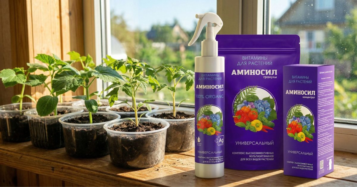 Кроме того, в апреле, на подоконниках и стеллажах уже подрастает рассада перцев, баклажанов, томатов, земляники, петунии, эустомы и многих других садовых культур. Не забываем проводить своевременные подкормки Аминосилом – как корневые, так и листовые. Примерно 1 раз в 2 недели. Для этого используем Аминосил универсальный в виде концентрата, спрея или гранул. Можно использовать и адресные препараты Аминосила – для овощей или цветов.