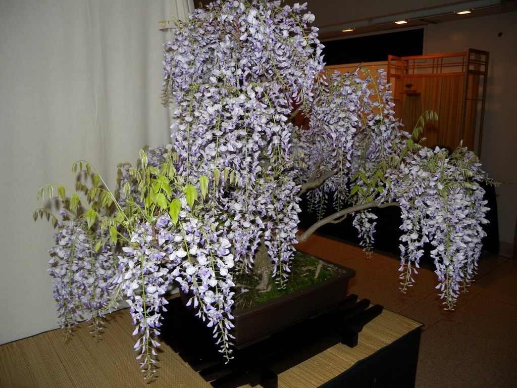 Глицинии выращивают не только в открытом грунте. Она неплохо чувствует себя в горшках и вазонах в виде штамбового деревца, которое можно получить с помощью правильной обрезки. Осенью такие растения вносят в помещение с температурой 8-10 град. При влажности воздуха 65-75 % и ярком освещении (2500-6500 лк). Зимой поливают очень экономно. В марте молодые боковые побеги обрезают до 2-3 хороших почек, формируя крону. Летом выносят на открытый воздух и обильно поливают.