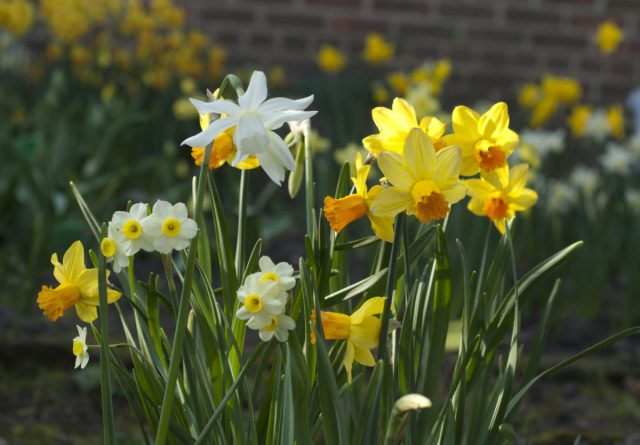 В отношении засыхающей листвы требования те же, что и у тюльпанов с нарциссами: не нужно трогать, пока не засохнет окончательно. Мелкие, конечно, как-то поаккуратнее крупных засыхают и декорирование их местоположения обычно не составляет труда.