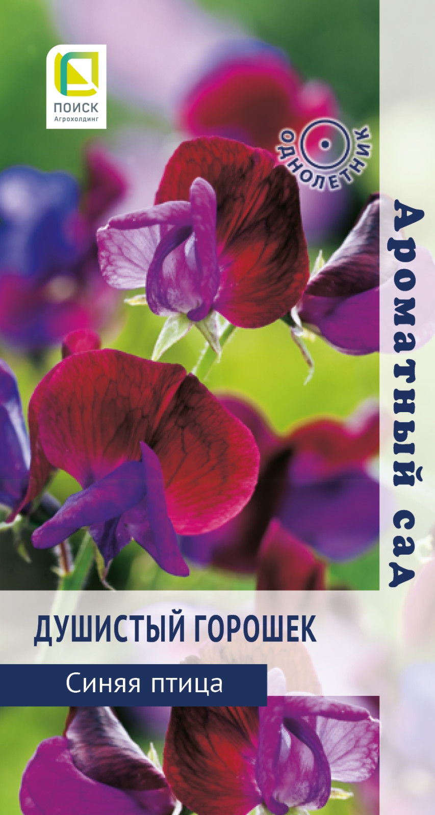 Самый ароматный душистый горошек! Лазающие крепкие, хорошо облиственные стебли длиной до 200 см. Цветоносы прочные, упругие, 25-45 см длиной. Шикарная редкая окраска – цветки пурпурно-фиолетовые по 5-6 в кисти, с нежным сладким ароматом. Душистый горошек Синяя птица цветет с конца июня до заморозков. Широко используют для вертикального оформления цветников.