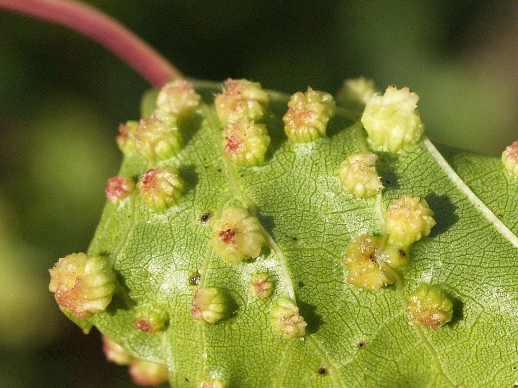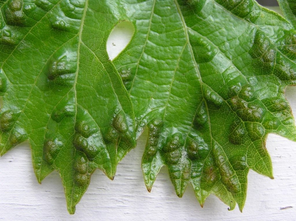Виноградный зудень или войлочный клещ довольно распространенный вредитель виноградников. Вредителя называют войлочным клещом за формирование на нижней стороне листа впадинок, прикрытых белым плотным налетом, напоминающем войлок. На верхней стороне листа появляются типичные бугорки – место обитания клеща.