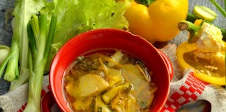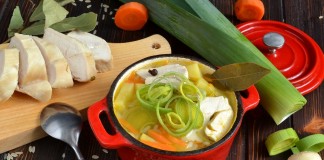 Овощной суп на курином бульоне – сезонный суп, которые обычно готовят из того, что выросло на грядке. Этот летний супчик я приготовила на крепком бульоне из куриной грудки, сваренной с пучком зелени и стрелками чеснока. В начале лета стрелки чеснока хочется куда-нибудь пристроить. Выбросить, рука не поднимается, зато в бульоне они просто незаменимы. Молодой картофель, ранняя капуста, первые помидоры и сладкий перец составят отличную компанию куриной грудке.