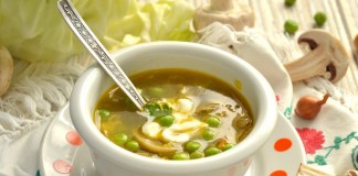 Куриный суп с зелёным горошком и грибами — полезное первое блюдо, которое можно включить в диетическое меню по причине низкой калорийности. Это супчик на каждый день, никаких особенных ингредиентов в нём нет. В сезон сбора грибов вместо шампиньонов можно взять лесные грибы. Но с лесными грибами готовить сложнее и дольше, так как их нужно предварительно отваривать. Однако, если лес одарил вас боровиками, то их варят также как шампиньоны, то есть быстро.