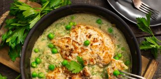 Простое и вкусное блюдо из куриной грудки – жареное куриное филе в чесночном соусе. Возьмите небольшую куриную грудку и, пока маринуется филе, приготовьте бульон для соуса из каркаса грудки. Вкусно и экономно! Время подготовки понадобится для маринования филе и приготовления куриного бульона. Снимаем с небольшой куриной грудки кожу, разрезаем грудку вдоль килевой кости.