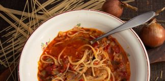 Томатный суп с курицей и вермишелью