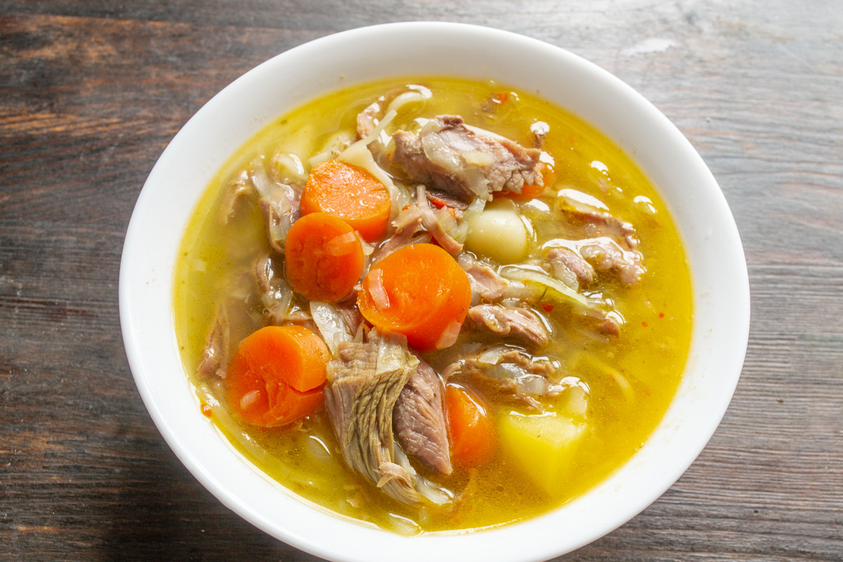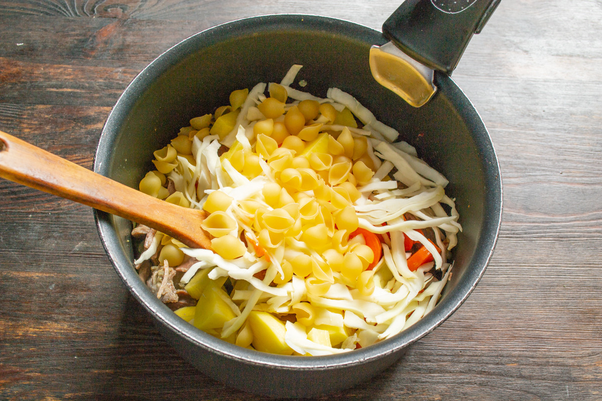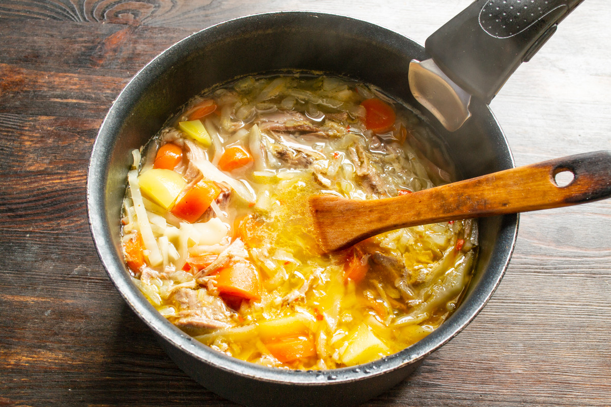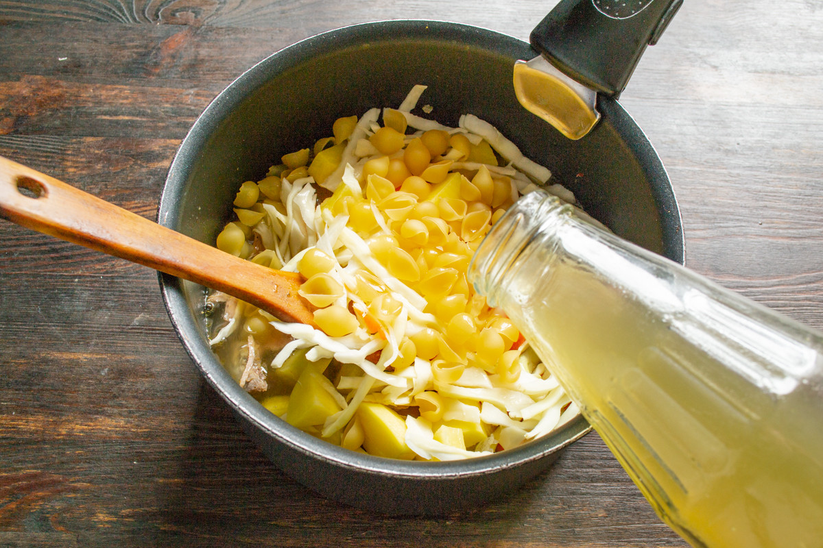 Способ приготовления бабушкиного супа с мясом и макаронами