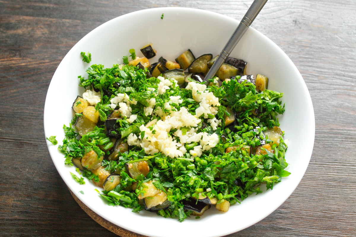 Способ приготовления баклажанов с чесноком и петрушкой
