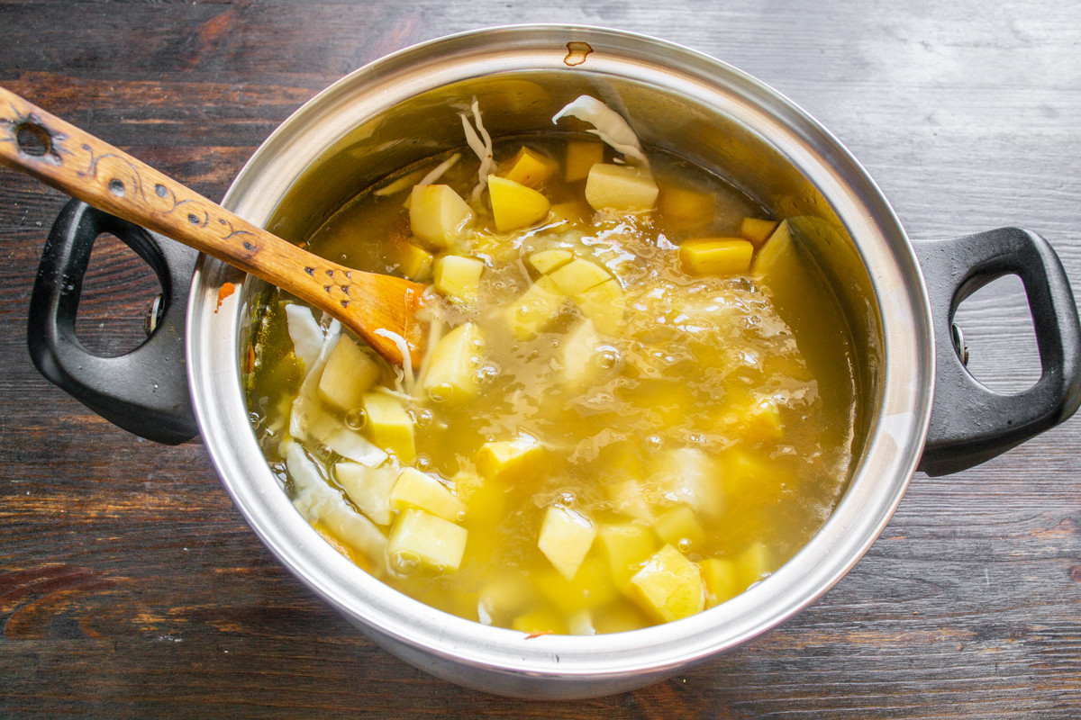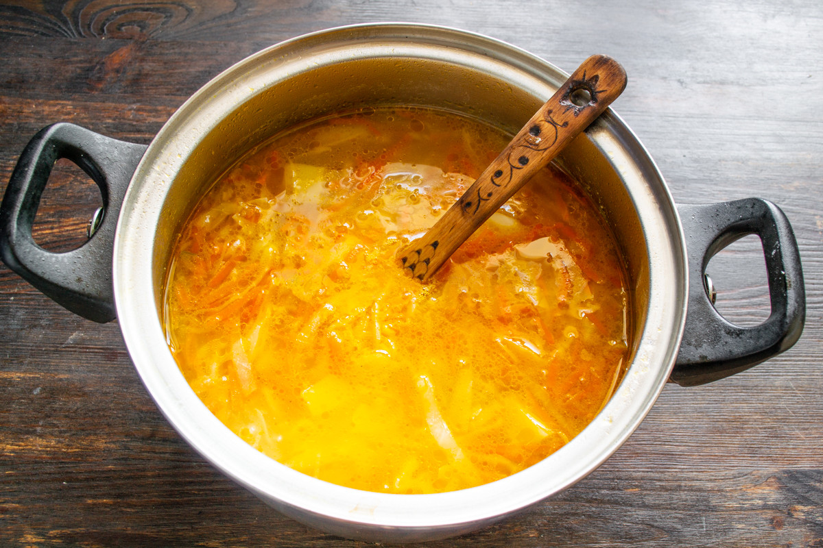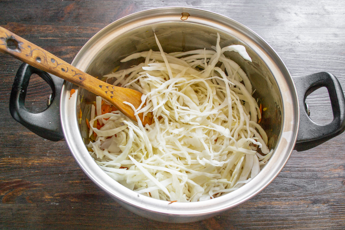 Нагреваем до кипения. Готовим на тихом огне 20 минут, или пока капуста не станет мягкой.