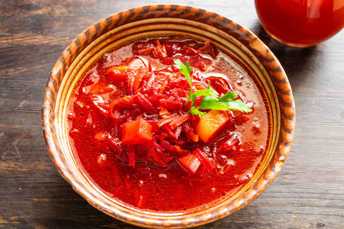 Любите борщ? Попробуйте рецепт с томатным соком! Отличная замена томатной пасте, которая не всем подходит. Очень вкусный, легкий борщ без уксуса. Готовьте на овощном бульоне для вегетарианцев и в пост, для обычного меню на курином или мясном бульоне.