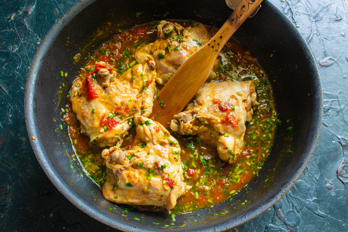 Способ приготовления чахохбили по-домашнему с белым вином и сладким перцем