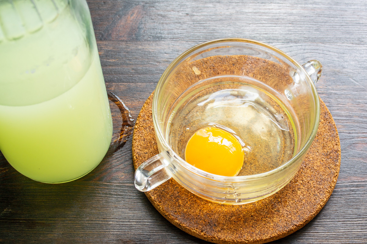 Следом за сывороткой или молоком отправляем в бутылку куриное яйцо. Чтобы ингредиенты удобно переместились в бутылку через узкое горлышко, используйте воронку. Воронку можно сделать из пластиковой бутылки меньшего размера.