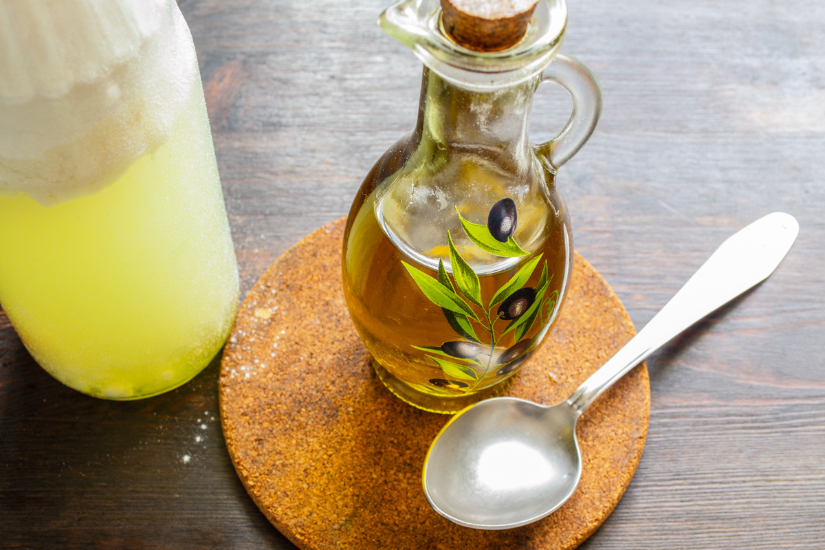 Вливаем столовую ложку оливкового или растительного масла без запаха. В тесто добавляйте рафинированное масло, а холодный отжим оставьте для салата.