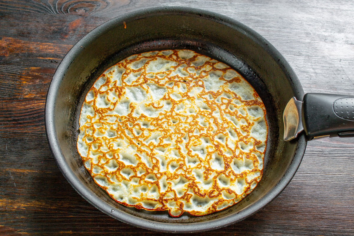 Переворачиваем блин и поджариваем с другой стороны.