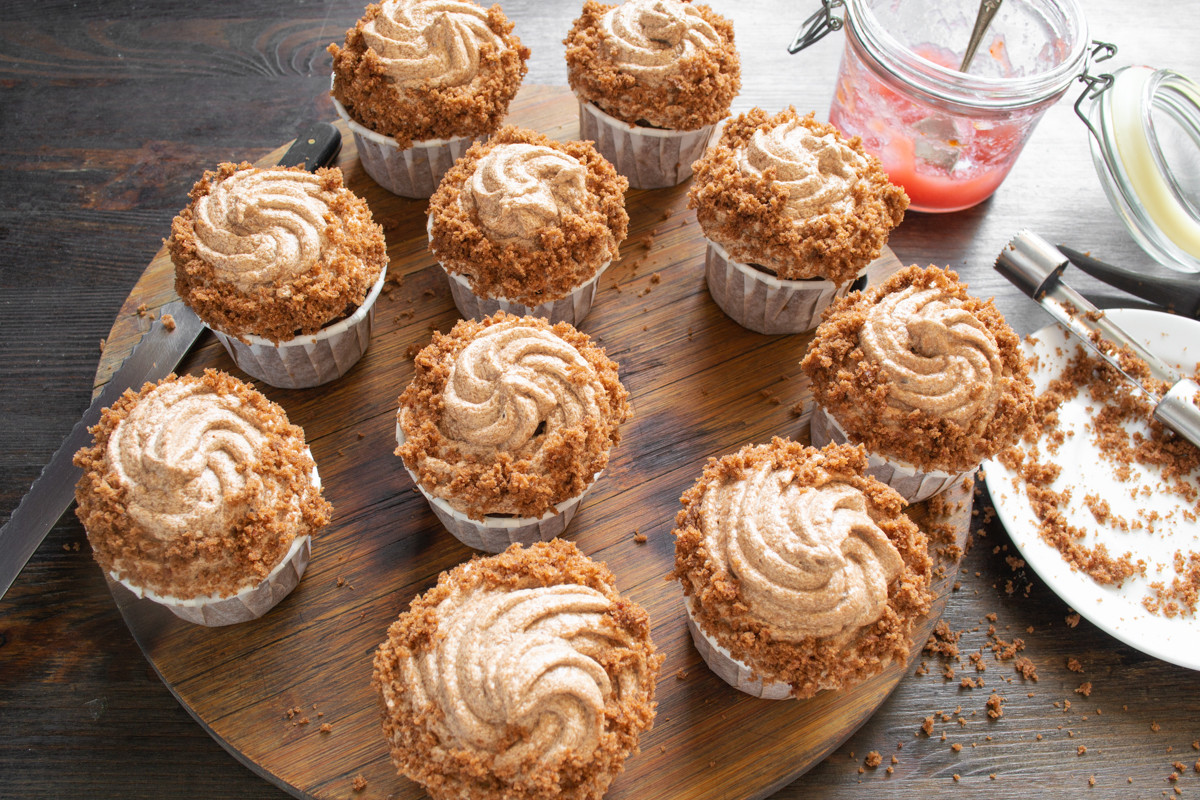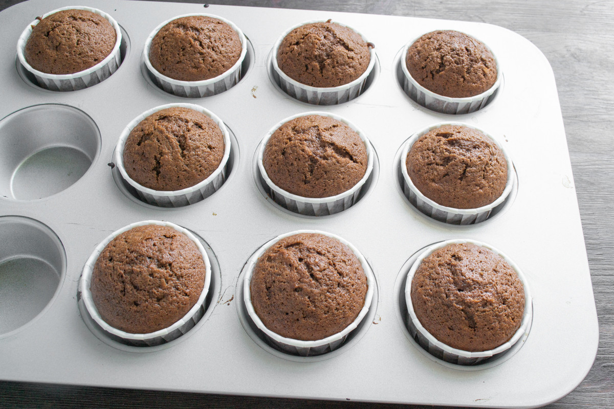 Выпекаем при 180 градусах по Цельсию 25 минут. Точное время выпечки зависит от размера кексов и характеристик вашей духовки, оно может немного отличаться от указанного в рецепте. Готовые кексы остужаем на решетке.
