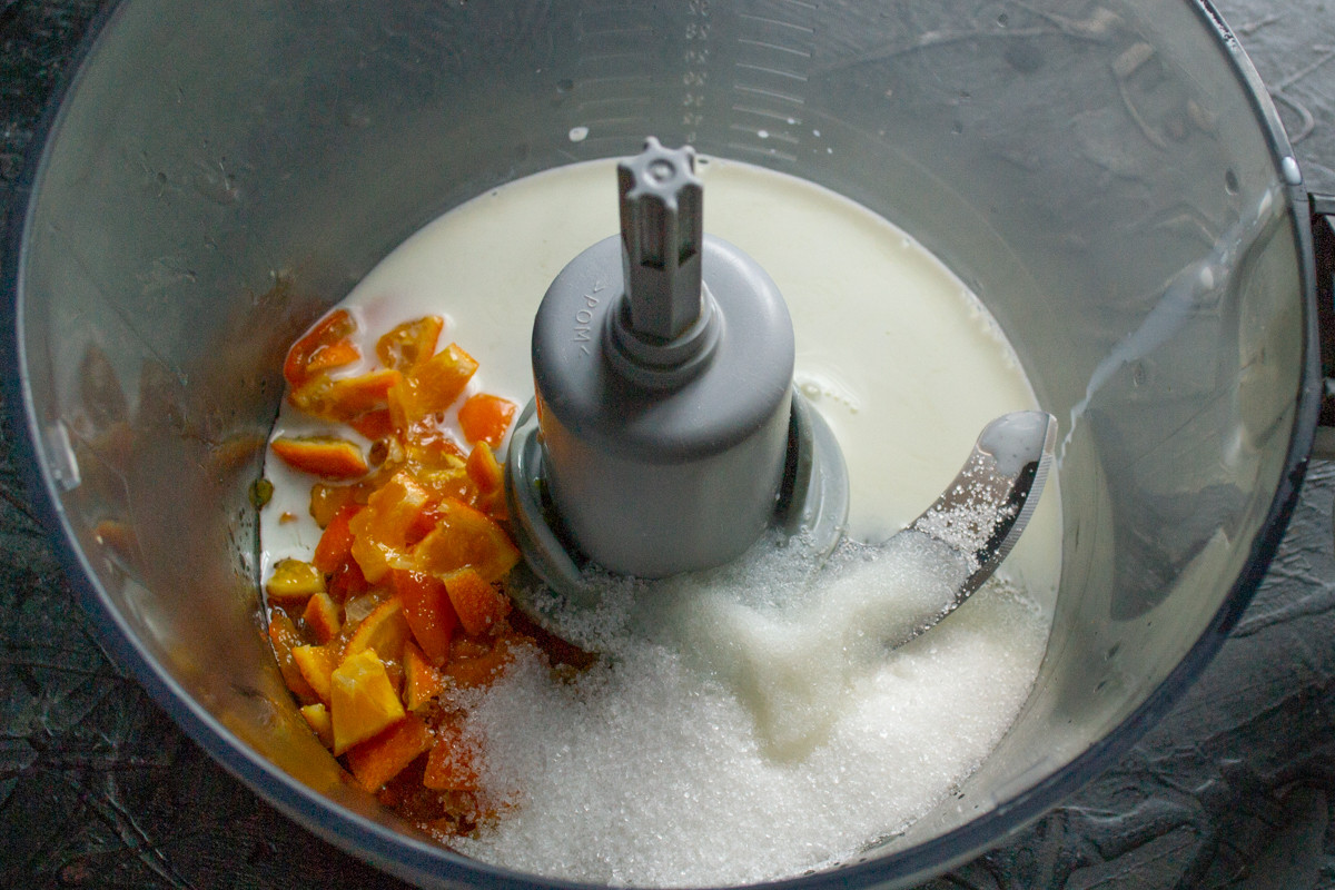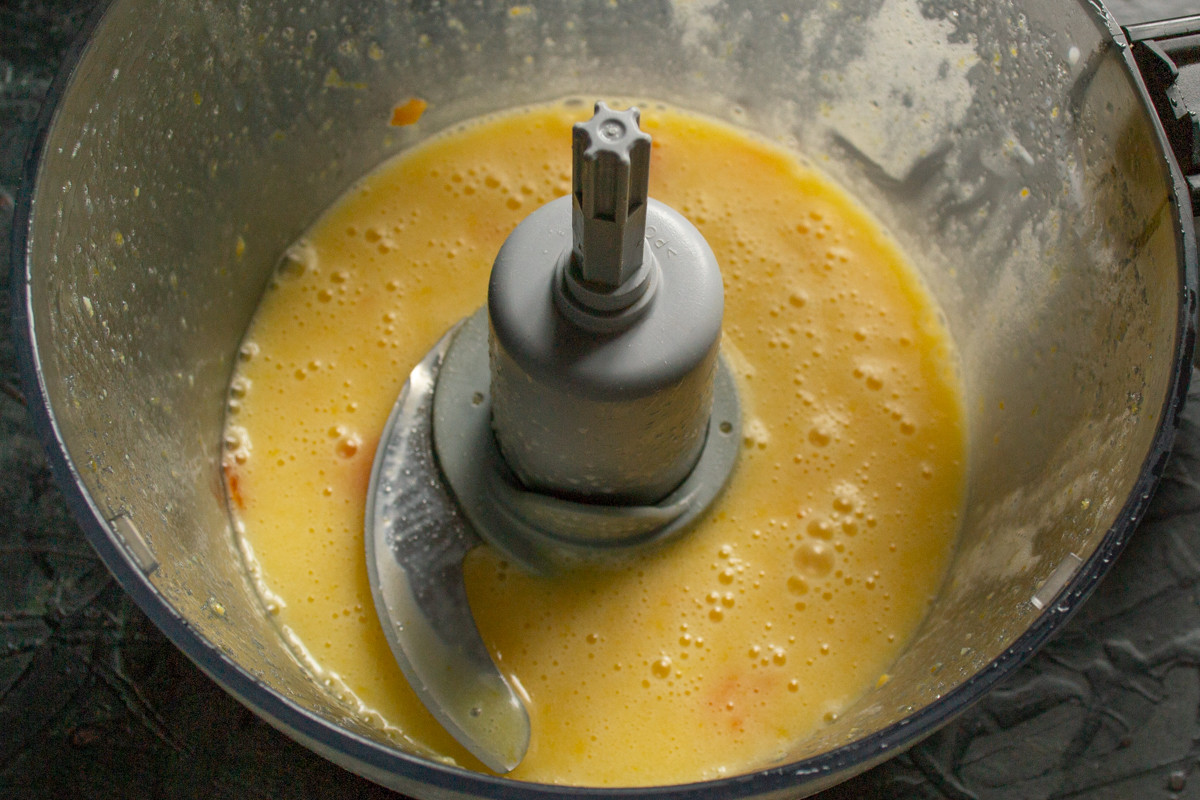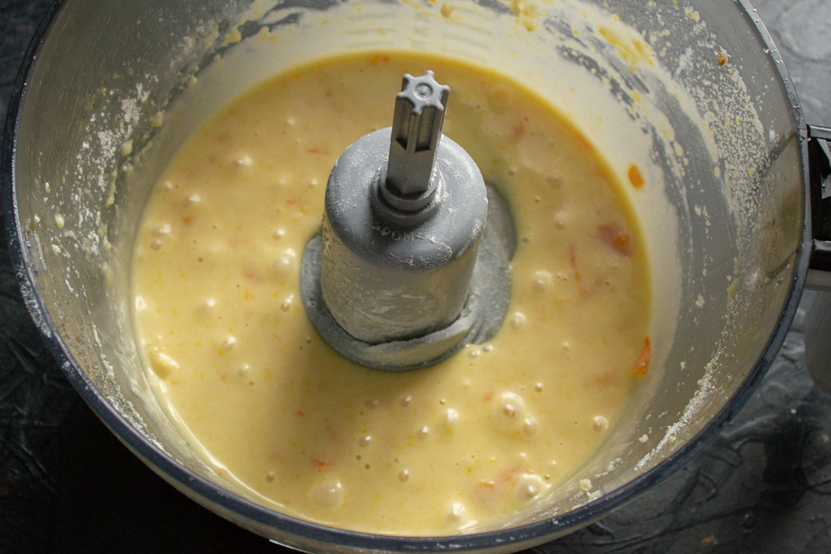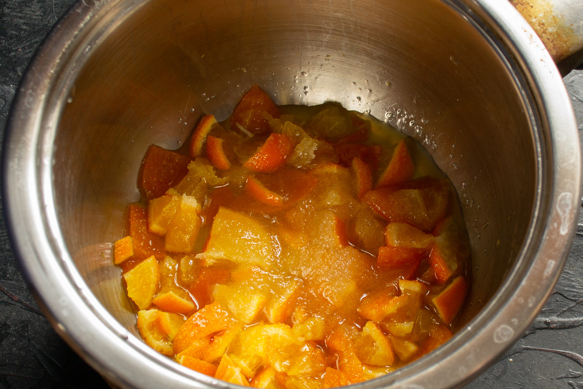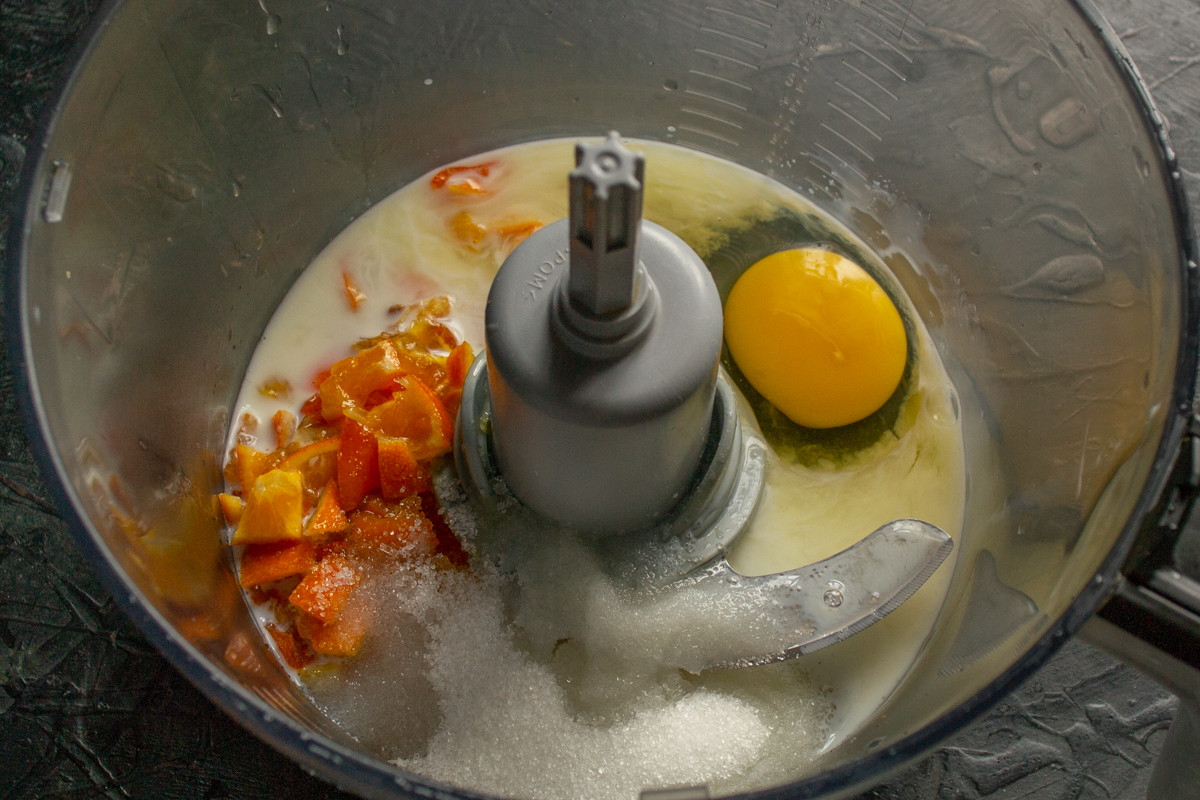 Смешиваем жидкие ингредиенты несколько минут, небольшие кусочки кожуры останутся целыми. Пусть так и остаются, в выпечке они будут как цукаты.