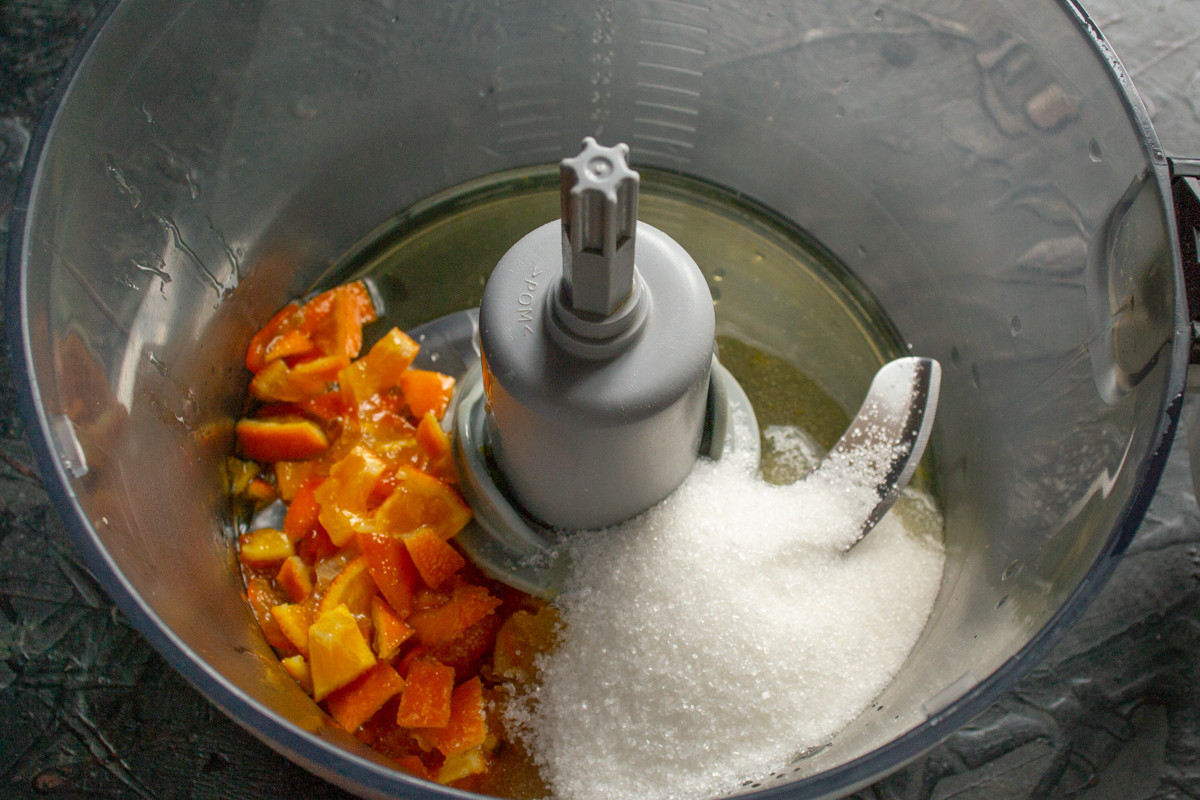 Кумкват и мандарины тщательно моем, ополаскиваем кипятком и нарезаем мелко. можно ограничиться только кумкватом или добавить к нему немного апельсинового сока. Однако, если есть мандарин с тонкой и мягкой кожурой, то вкус будет богаче.